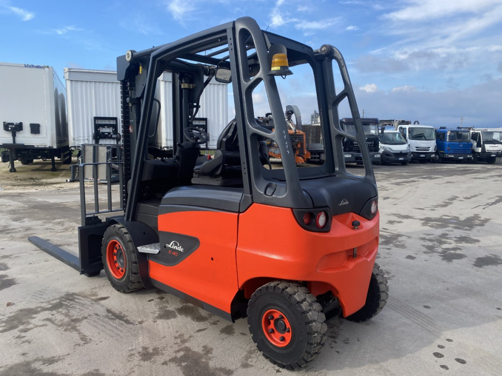 Carrelli elettrici usati di marca Linde modello E40 H1/600 con propulsione Elettrica, portata 40 q.li, altezza di sollevamento 3100 mm, in vendita. Occasione.