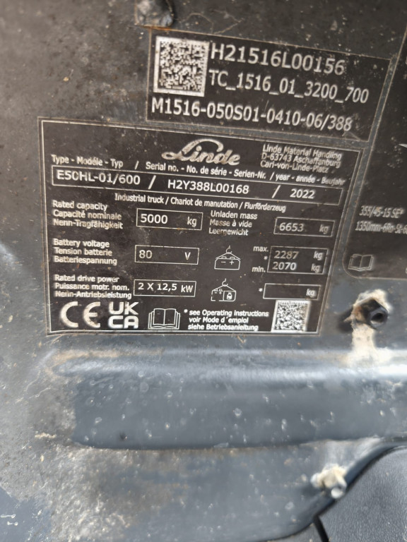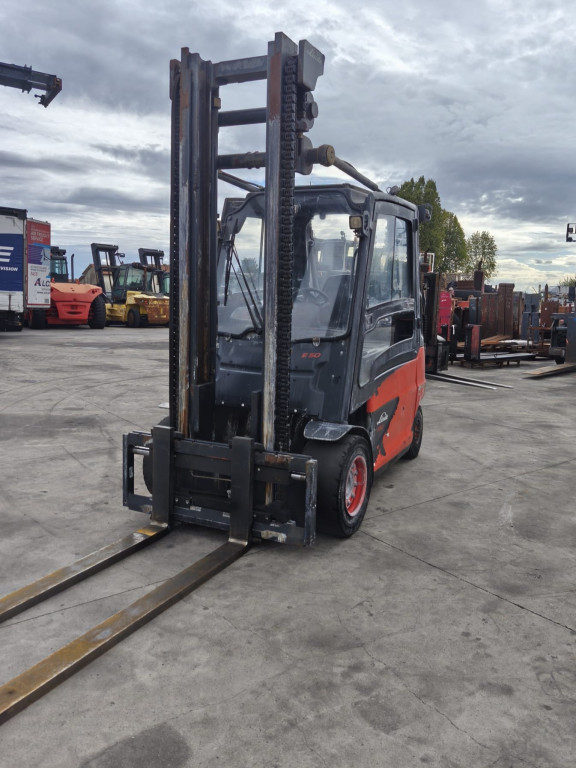Carrelli elettrici usati di marca Linde modello E50HL-01/600 con propulsione Elettrica,  portata 50 q.li,  altezza di sollevamento 4100 mm,  in vendita. Occasione.