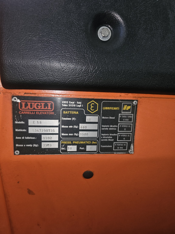 Carrelli elettrici usati di marca Lugli modello E 18 con propulsione Elettrica, portata 18 q.li, altezza di sollevamento 3300 mm, in vendita. Occasione a € 2.800.