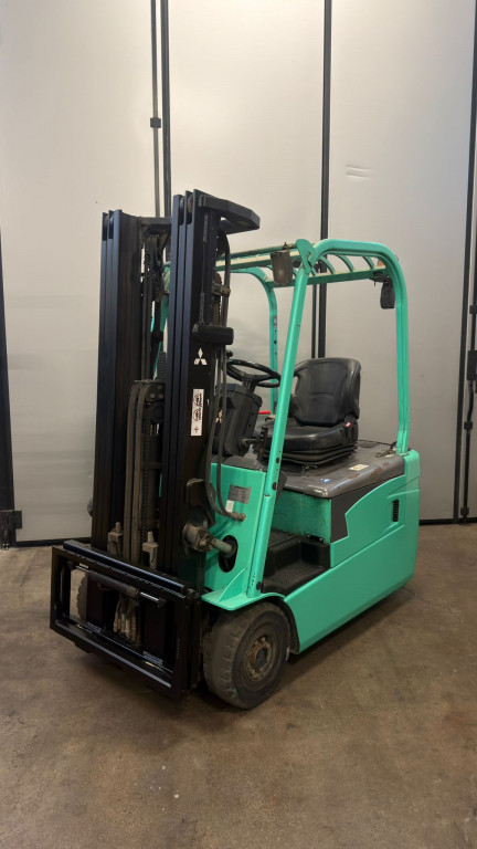 Carrelli elettrici usati di marca Mitsubishi modello FB18NT con propulsione Elettrica, portata 18 q.li, altezza di sollevamento 4800 mm, in vendita. Occasione.