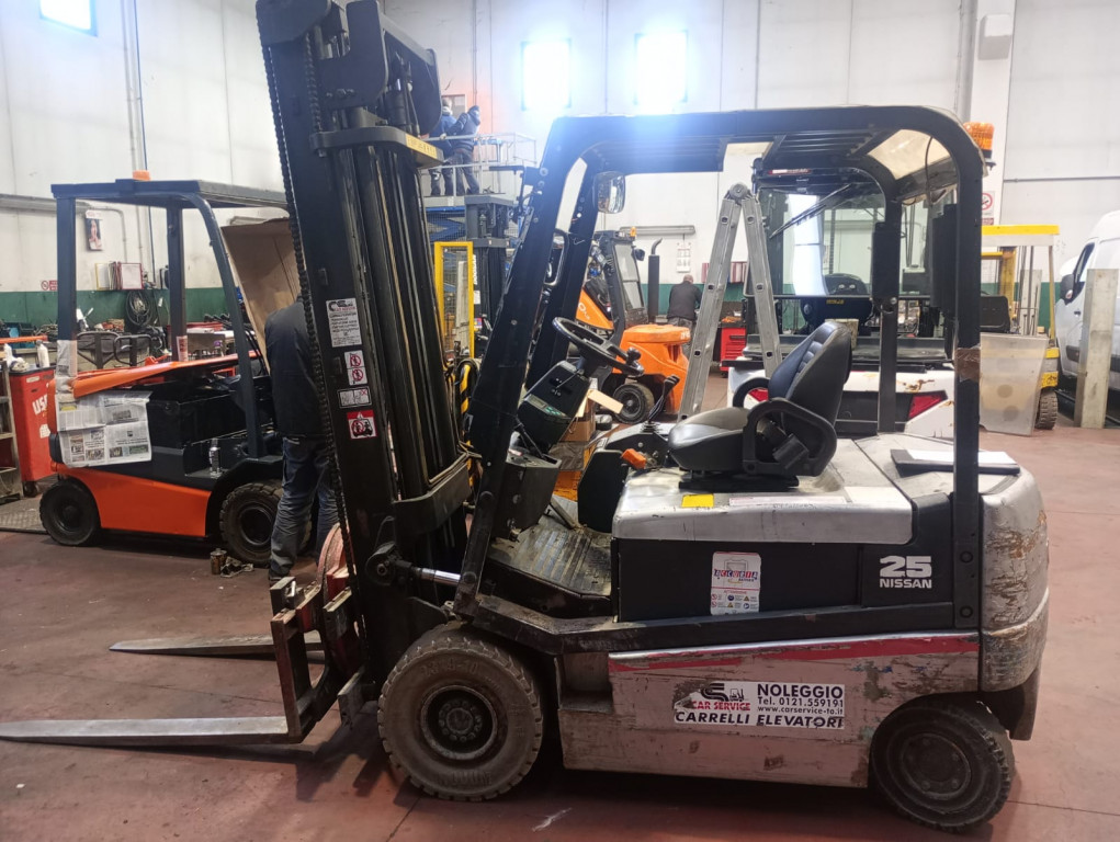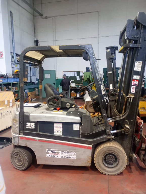 Carrelli elettrici usati di marca Nissan modello QX25 con propulsione Elettrica, portata 25 q.li, altezza di sollevamento 4000 mm, in vendita. Occasione a € 4.500.