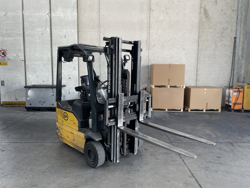 Carrelli elettrici usati di marca OM modello XE15 3ac con propulsione Elettrica, portata 15 q.li, altezza di sollevamento 4470 mm, in vendita. Occasione a € 6.900.