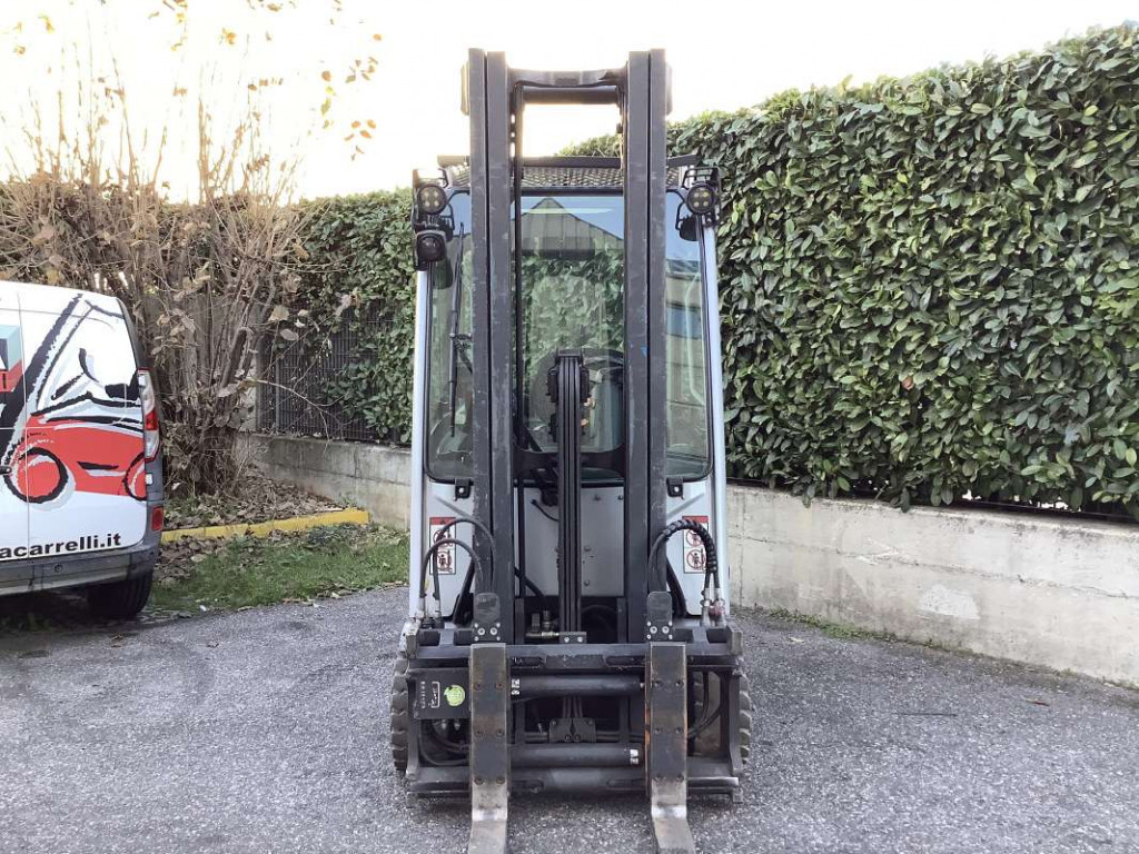 Carrello funzionante completo di batteria, forche, traslatore, posizionatore, cabina completa, fari lavoro. Running forklift with battery, forks, sideshift, full cabin, spotlights