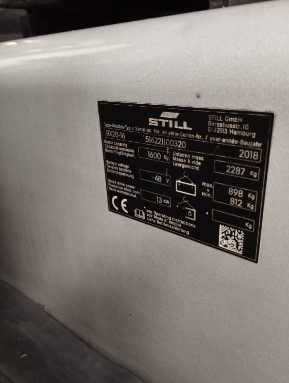 Carrelli elettrici usati di marca Still modello RX 20-16 con propulsione Elettrica, portata 16 q.li, altezza di sollevamento 4620 mm, in vendita. Occasione a € 10.500.