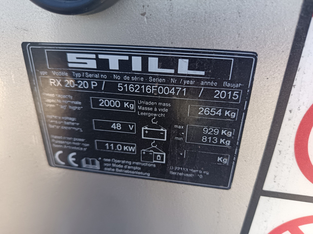 Carrelli elettrici usati di marca Still modello RX 20-20 P con propulsione Elettrica, portata 20 q.li, altezza di sollevamento 4830 mm, in vendita. Occasione a € 16.999.