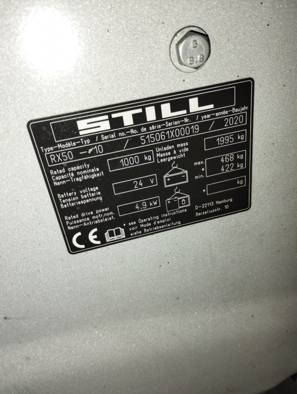 Carrelli elettrici usati di marca Still modello RX 50-10 con propulsione Elettrica, portata 10 q.li, altezza di sollevamento 3930 mm, in vendita. Occasione a € 9.900.