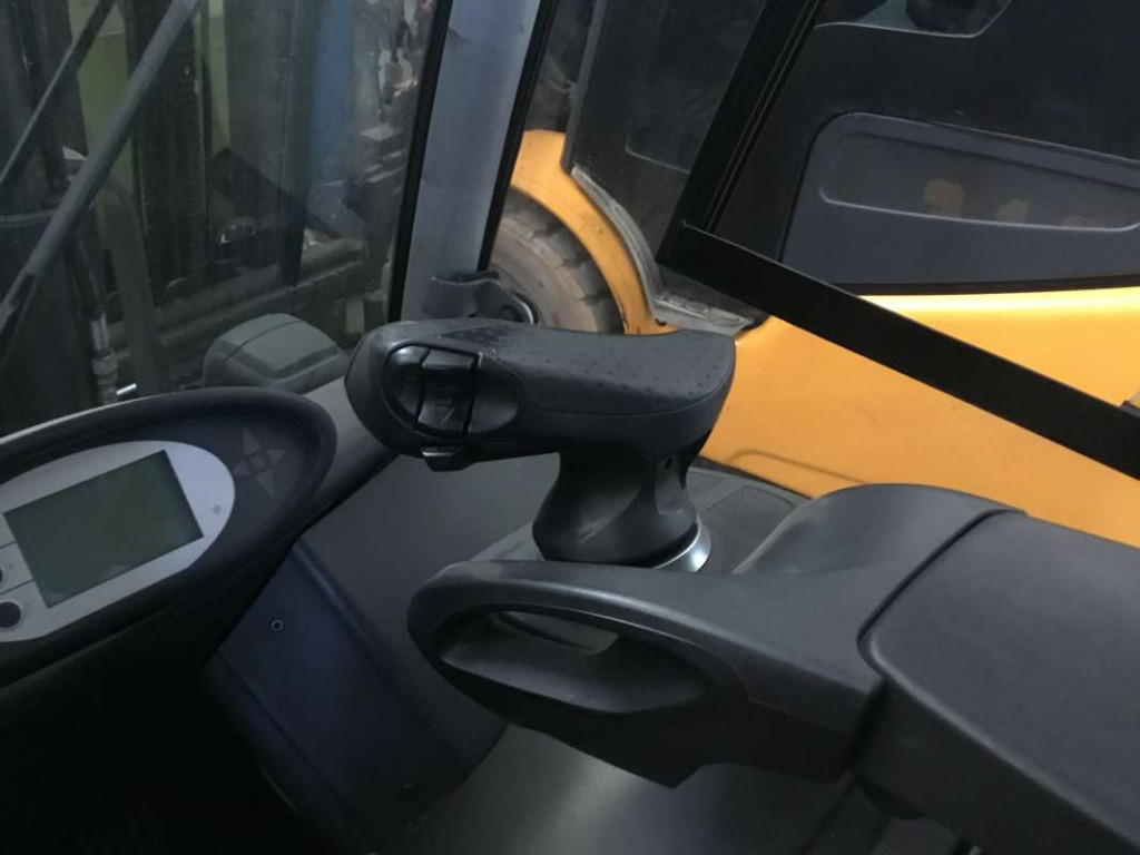 Carrello funzionante completo di cabina completa, traslatore, forche, 16758 h. di lavoro, fari lavoro. Working forklift complete with full cabin, side shift, spot lights, forks. 16.758 hours of work.