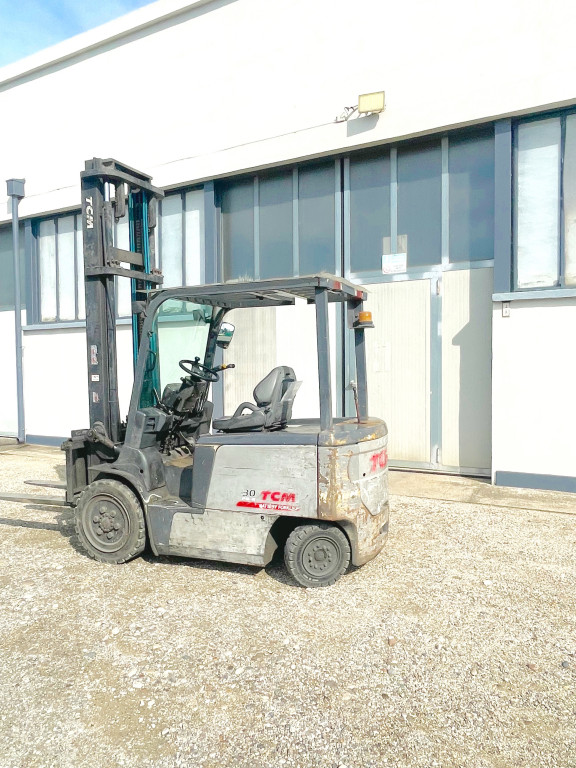 Carrelli elettrici usati di marca TCM modello FB30-7 con propulsione Elettrica, portata 30 q.li, altezza di sollevamento 5000 mm, in vendita. Occasione a € 6.900.