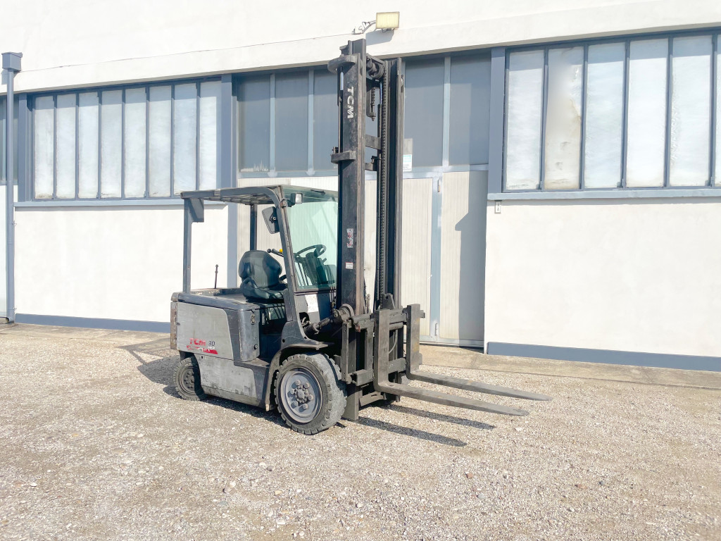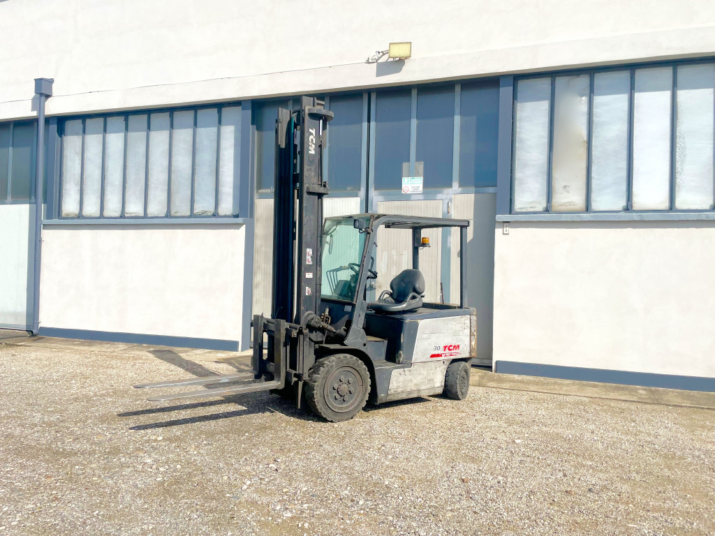 Carrelli elettrici usati di marca TCM modello FB30-7 con propulsione Elettrica, portata 30 q.li, altezza di sollevamento 5000 mm, in vendita. Occasione a € 6.000.
