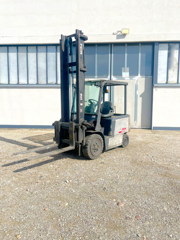 Carrelli elettrici usati di marca TCM modello FB30-7 con propulsione Elettrica, portata 30 q.li, altezza di sollevamento 5000 mm, in vendita. Occasione a € 6.800.