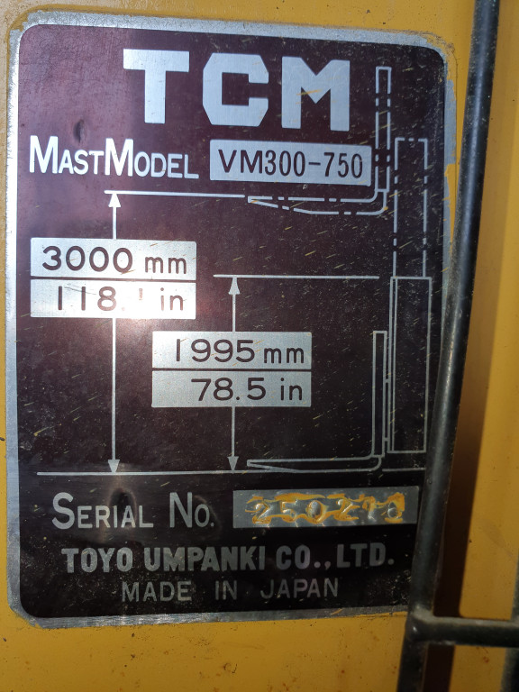 Carrelli elettrici usati di marca TCM modello VM300-750 con propulsione Elettrica, portata 20 q.li, altezza di sollevamento 3000 mm, in vendita. Occasione a € 5.500.