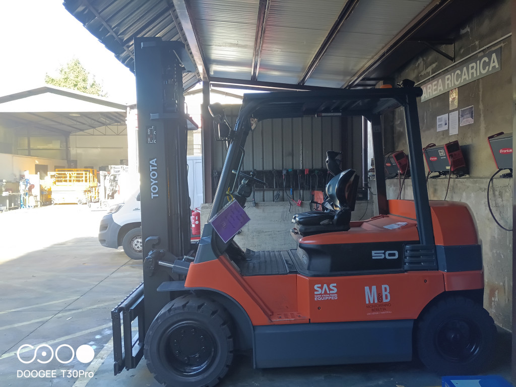 Carrelli elettrici usati di marca Toyota modello 7FBMF50 con propulsione Elettrica, portata 50 q.li, altezza di sollevamento 4000 mm, in vendita. Occasione a € 16.000.