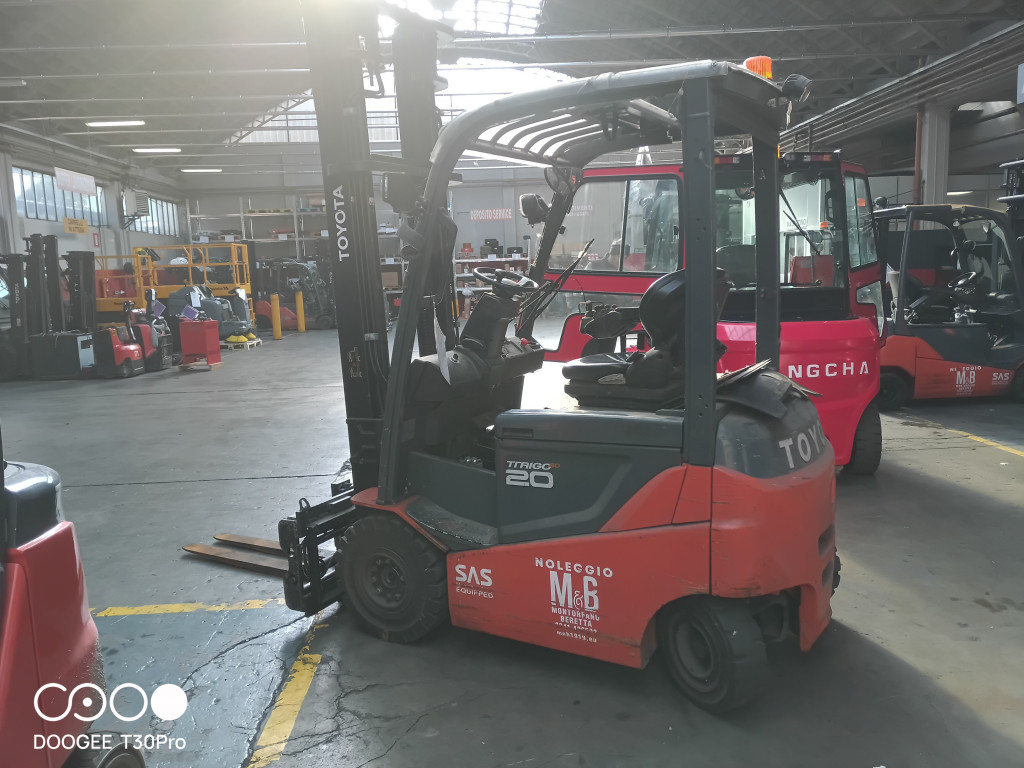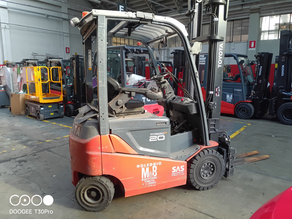 Carrelli elettrici usati di marca Toyota modello 8FBMKT20 con propulsione Elettrica, portata 20 q.li, altezza di sollevamento 4000 mm, in vendita. Occasione a € 12.000.