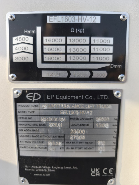 Grandi portate di marca EP modello EFL1603-HV-12 con propulsione Elettrica, portata 160 q.li, altezza di sollevamento 4800 mm, in vendita. Occasione.
