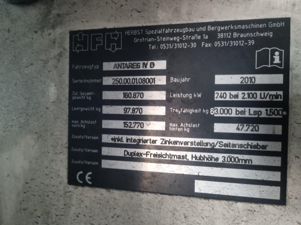 Grandi portate di marca Herbst modello ANTARES IV D con propulsione Diesel, portata 630 q.li, altezza di sollevamento 3000 mm, in vendita. Occasione.