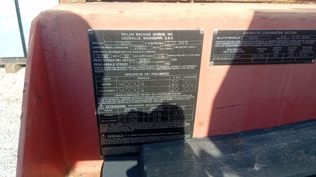 Grandi portate di marca Taylor modello TY520M con propulsione Diesel, portata 236 q.li, altezza di sollevamento 0 mm, in vendita. Occasione.