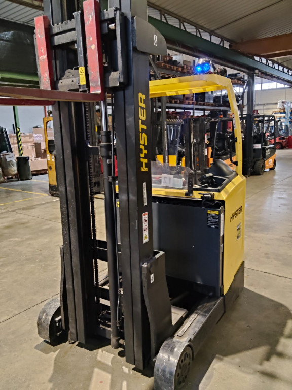 Carrelli retrattili a telaio stretto di marca Hyster modello R1.4 con propulsione Elettrica, portata 14 q.li, altezza di sollevamento 6750 mm, in vendita. Occasione a € 4.500.