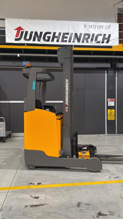 Carrelli retrattili a telaio standard di marca Jungheinrich modello ETV 214 con propulsione Elettrica, portata 14 q.li, altezza di sollevamento 6500 mm, in vendita. Occasione a € 5.900.