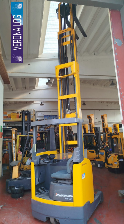Carrelli retrattili a telaio standard di marca Jungheinrich modello ETV 214 con propulsione Elettrica, portata 14 q.li, altezza di sollevamento 10250 mm, in vendita. Occasione a € 9.900.