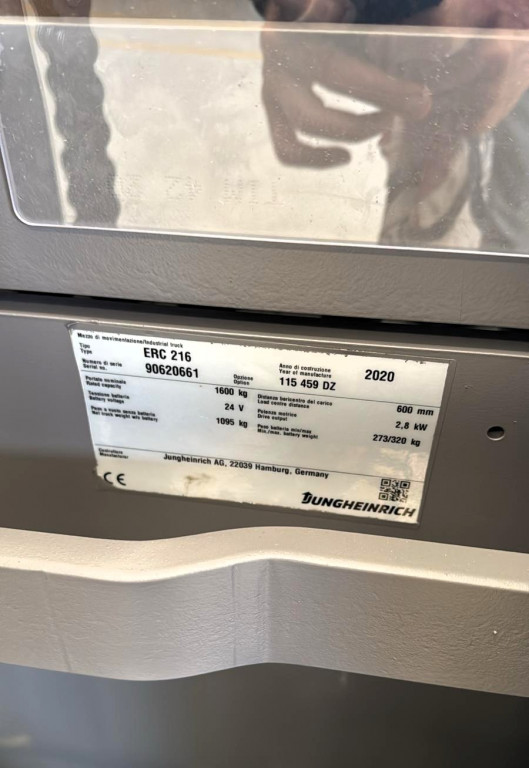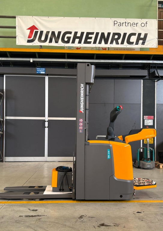 Stoccatori uomo a bordo di marca Jungheinrich modello ERC 216 con propulsione Elettrica, portata 16 q.li, altezza di sollevamento 4590 mm, in vendita. Occasione a € 8.900.