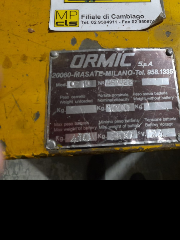 Stoccatori uomo a bordo di marca Ormic modello OP10 con propulsione Elettrica, portata 10 q.li, altezza di sollevamento 0 mm, in vendita. Occasione.