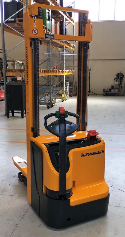 Stoccatori uomo a piedi di marca Jungheinrich modello EJC 212 con propulsione Elettrica, portata 12 q.li, altezza di sollevamento 3600 mm, in vendita. Occasione a € 5.900.