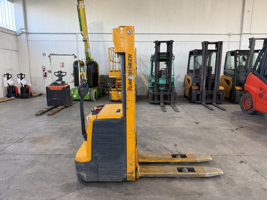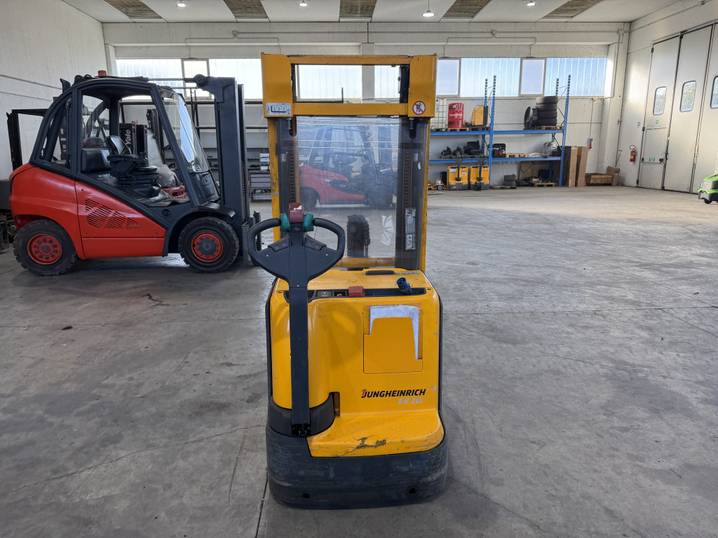 Stoccatori uomo a piedi di marca Jungheinrich modello EJC 212 con propulsione Elettrica, portata 12 q.li, altezza di sollevamento 4300 mm, in vendita. Occasione a € 3.900.