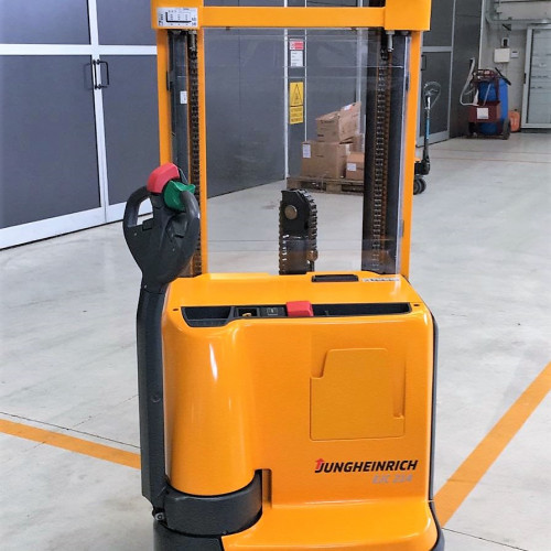 Stoccatori uomo a piedi di marca Jungheinrich modello EJC 214 con propulsione Elettrica, portata 14 q.li, altezza di sollevamento 4300 mm, in vendita. Occasione a € 6.400.