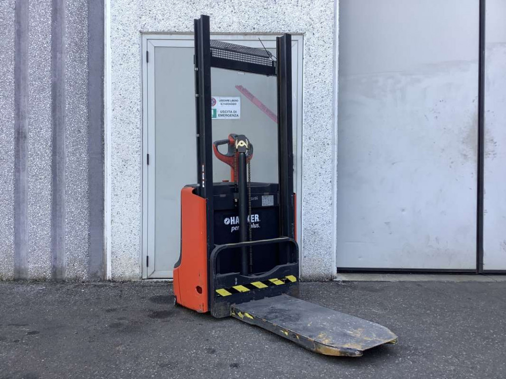 stoccatore elettrico funzionante completo di batteria caricabatterie, forca piatta.