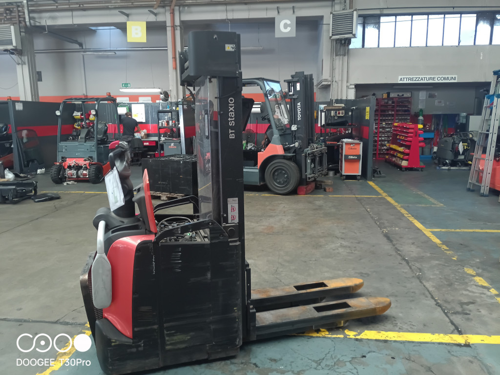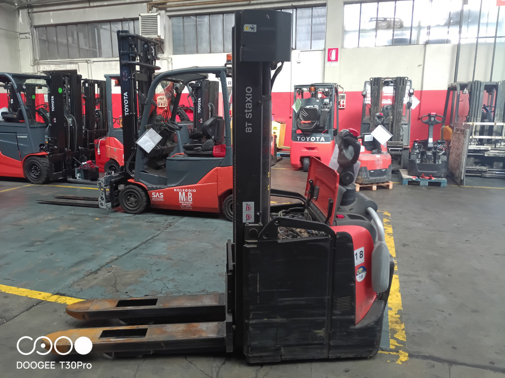 Stoccatori uomo a piedi di marca Toyota modello SPE140 con propulsione Elettrica,  portata 14 q.li,  altezza di sollevamento 3700 mm,  in vendita. Occasione a € 3.200.