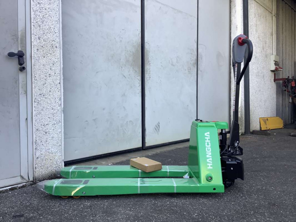 transpallet elettrico nuovo completo di batteria al litio e caricabatterie. New pallet truck with lithium battery and charger