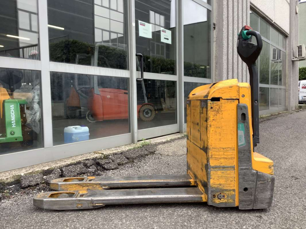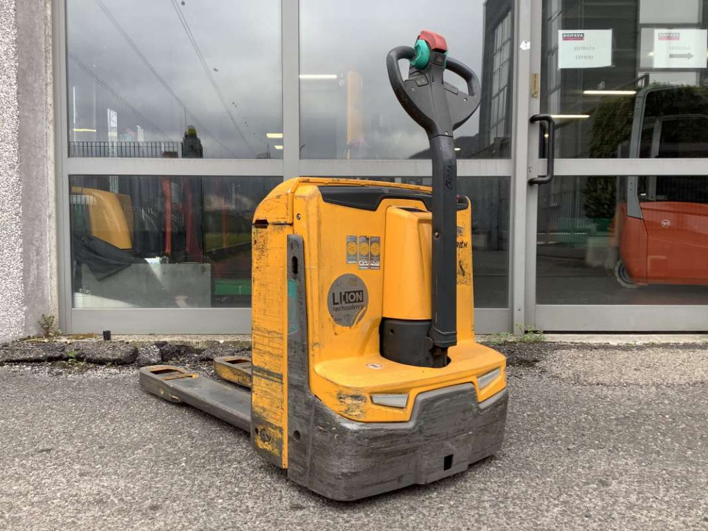 Transpallet elettrici uomo a terra di marca Jungheinrich modello EJE 116 con propulsione Altra, portata 16 q.li, altezza di sollevamento 200 mm, in vendita. Occasione a € 2.200.
