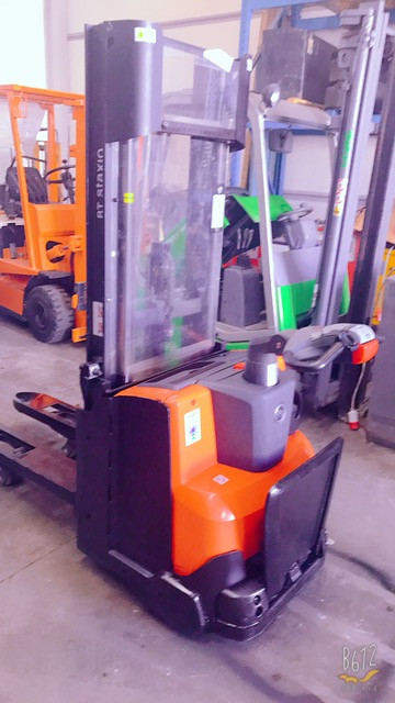 Transpallet elettrici uomo su pedana di marca BT modello swe12 con propulsione Elettrica, portata 14 q.li, altezza di sollevamento 2700 mm, in vendita. Occasione a € 3.500.