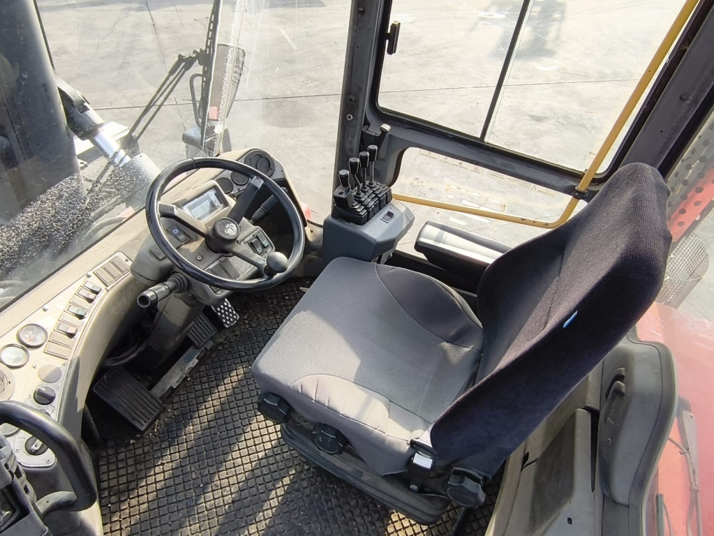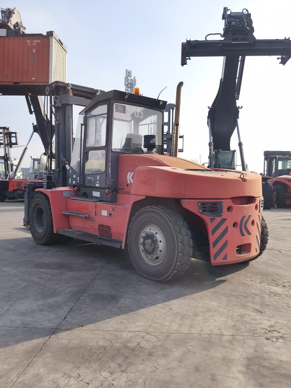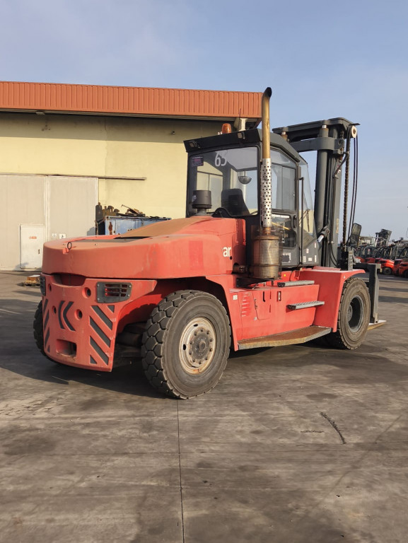 Carrelli diesel usati di marca Kalmar modello DCE 150-12 con propulsione Diesel, portata 150 q.li, altezza di sollevamento 4000 mm, a noleggio. Occasione.