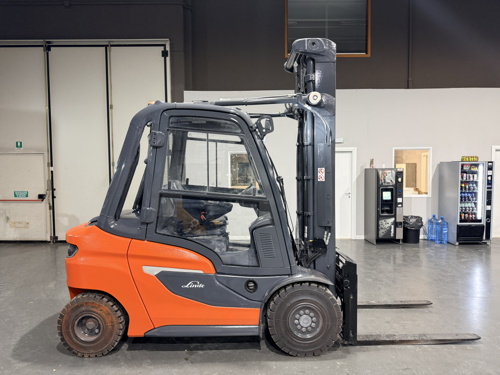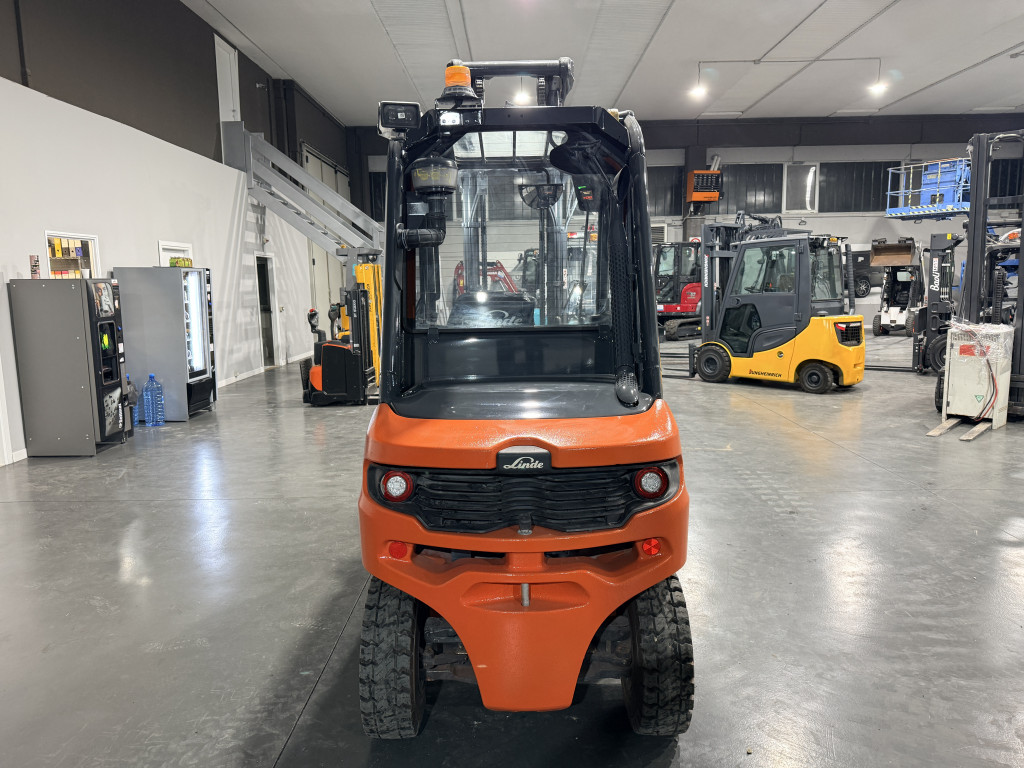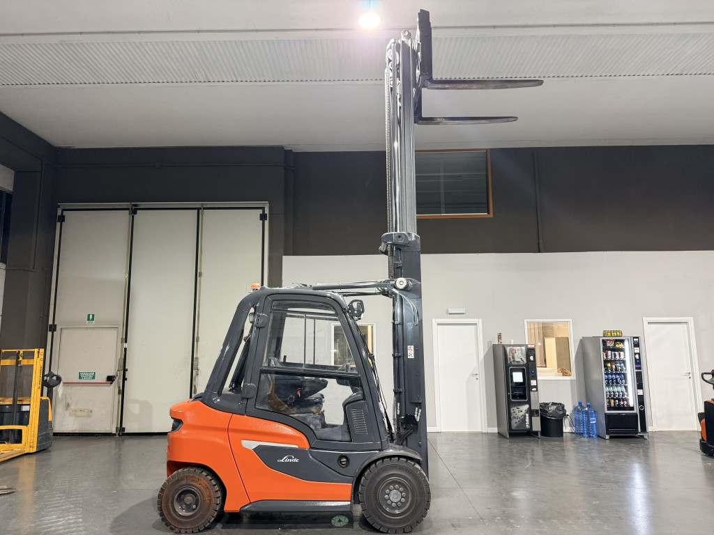 Carrelli diesel usati di marca Linde modello H30 con propulsione Diesel, portata 30 q.li, altezza di sollevamento 4500 mm, a noleggio. Occasione.