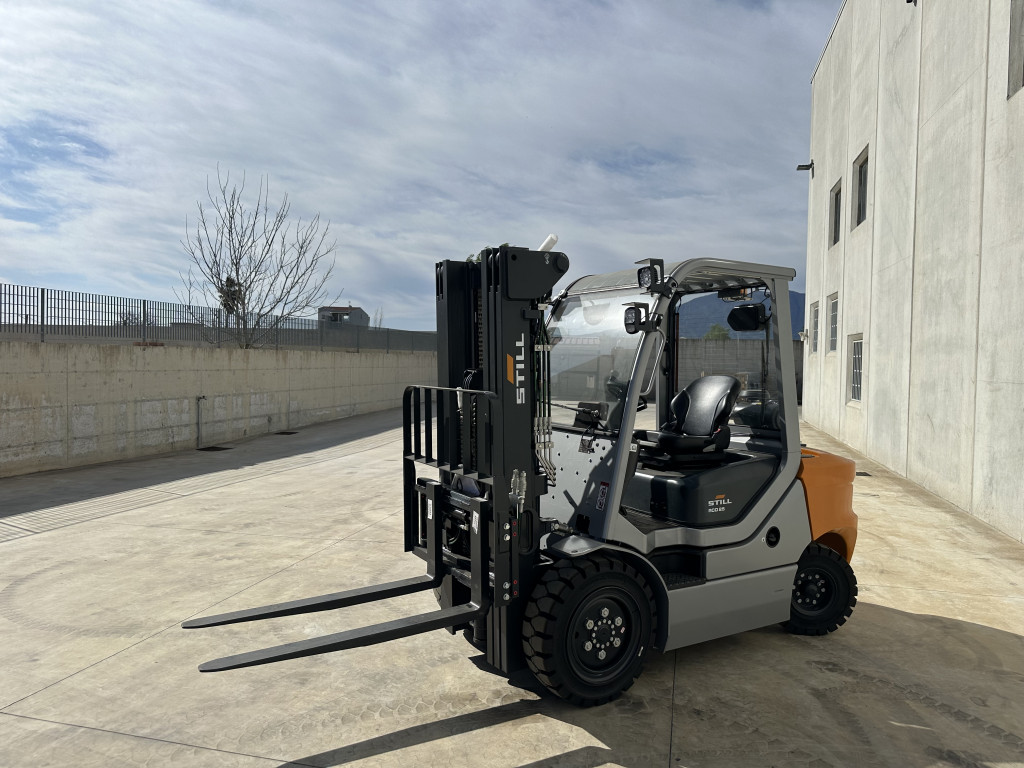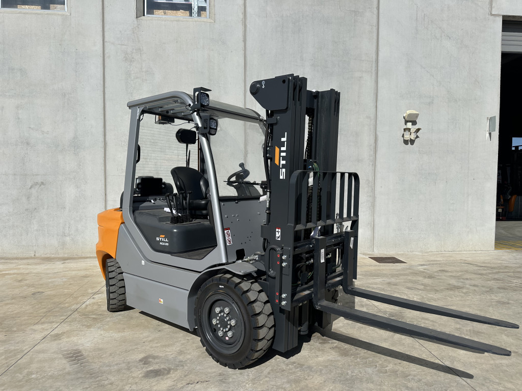 Carrelli diesel usati di marca Still modello RCD 25 con propulsione Diesel, portata 25 q.li, altezza di sollevamento 4500 mm, a noleggio. Occasione.