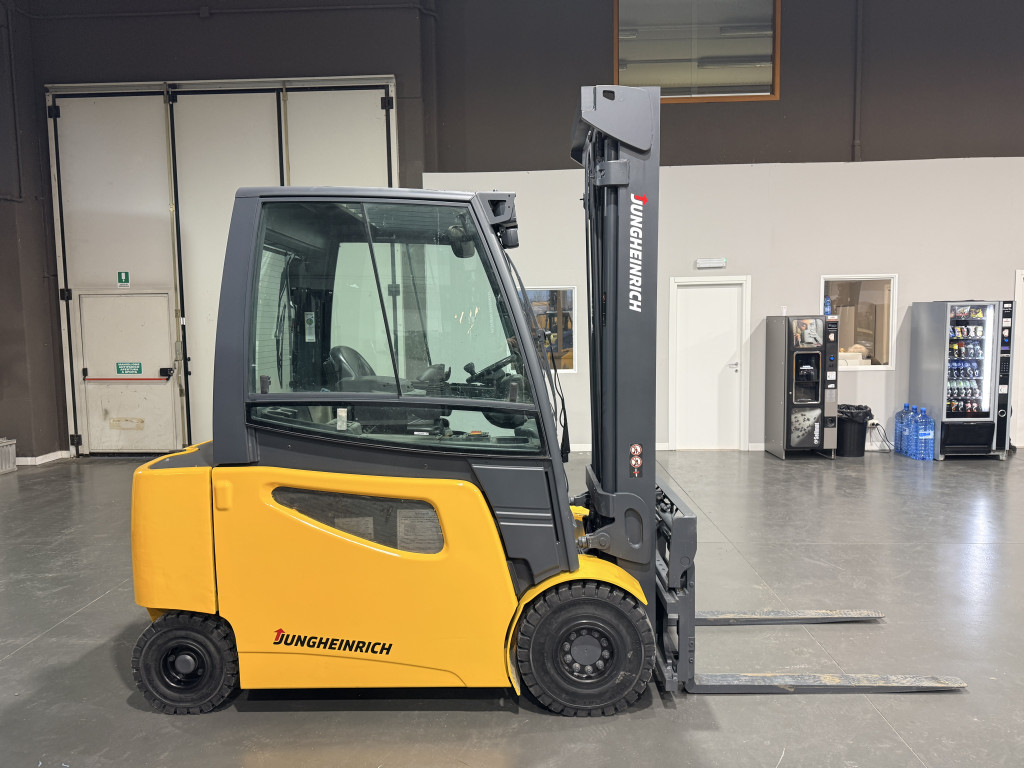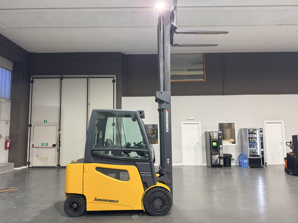 Carrelli elettrici usati di marca Jungheinrich modello EFG 425 400ZT con propulsione Elettrica, portata 25 q.li, altezza di sollevamento 4000 mm, a noleggio. Occasione.
