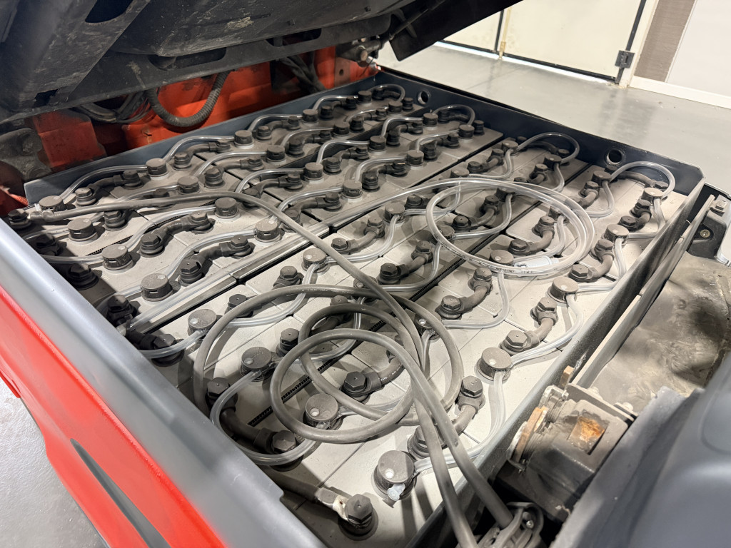 Carrelli elettrici usati di marca Linde modello E 40 con propulsione Elettrica, portata 40 q.li, altezza di sollevamento 4500 mm, a noleggio. Occasione.