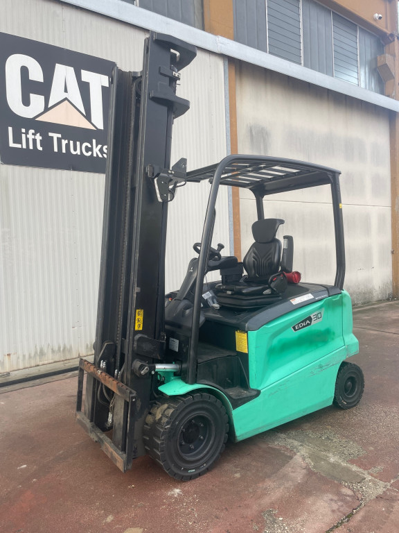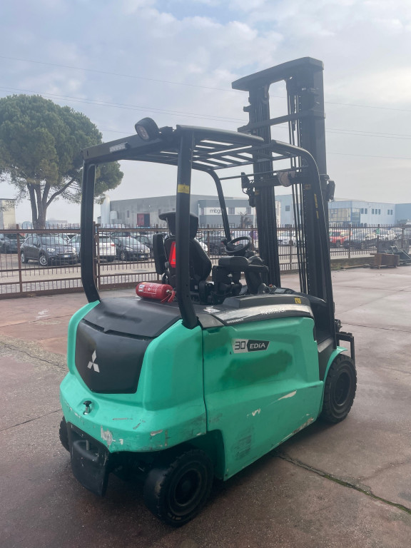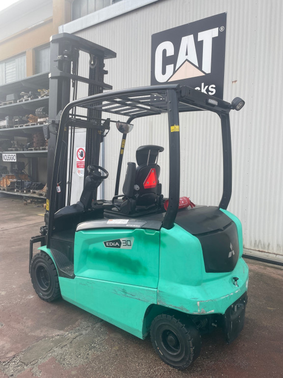 Carrelli elettrici usati di marca Mitsubishi modello FB30N con propulsione Elettrica, portata 30 q.li, altezza di sollevamento 4700 mm, a noleggio. Occasione.