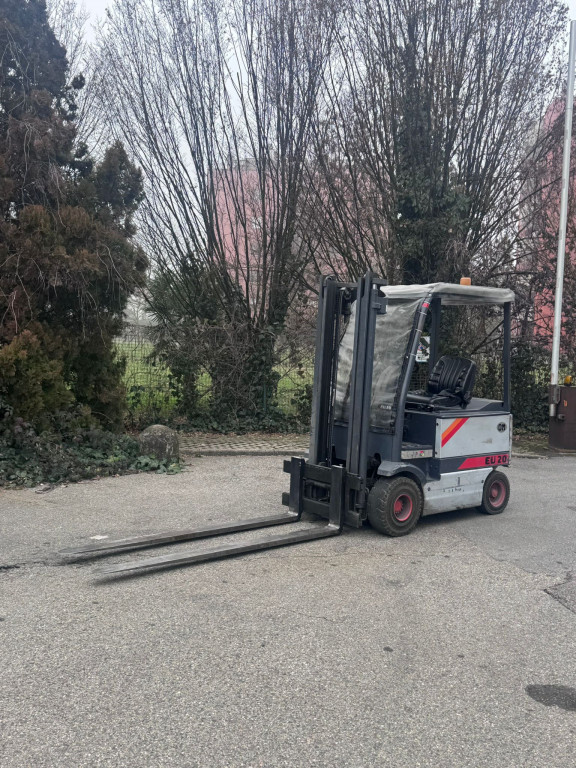 Carrello elevatore frontale elettrico usato, marca Om modello EU 20, anno di fabbricazione 1998. Altezza di sollevamento 3300mm montante duplex, portata massima 2000 Kg, forche da 2100mm, propulsione elettrica, batteria in ottimo stato, quattro ruote superelastiche. Completo di tutte i dispositivi di sicurezza, cicalino acustico per la retromarcia, specchio panoramico a 180°, lampeggiante, sedile in pelle, tettuccio e protezione anteriore. La macchina è provvista di manuale di uso e manutenzione
