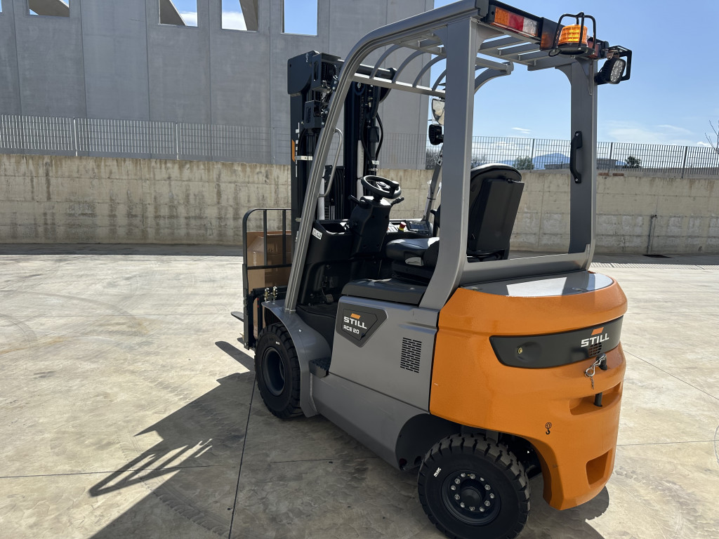 Carrelli elettrici usati di marca Still modello RCE 20P con propulsione Elettrica, portata 20 q.li, altezza di sollevamento 4850 mm, a noleggio. Occasione.