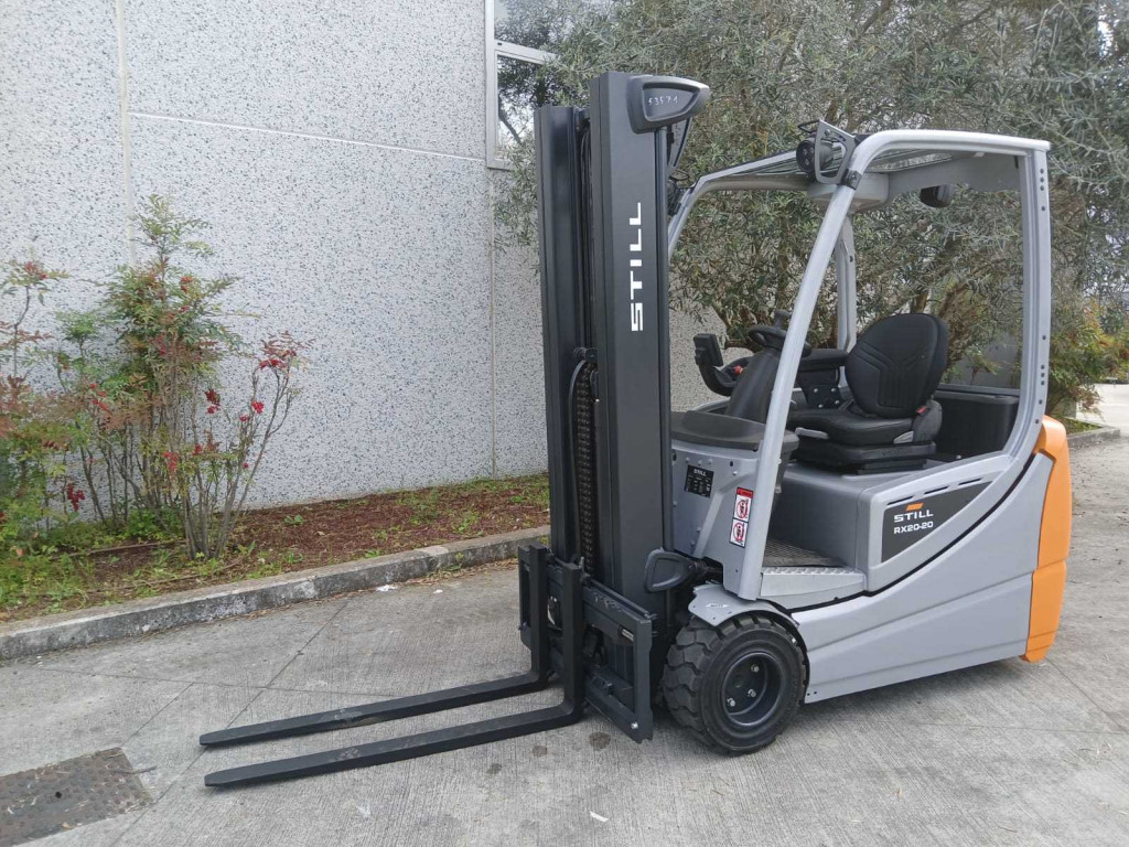 Carrelli elettrici usati di marca Still modello RX 20-20 L con propulsione Elettrica, portata 20 q.li, altezza di sollevamento 4800 mm, a noleggio. Occasione.