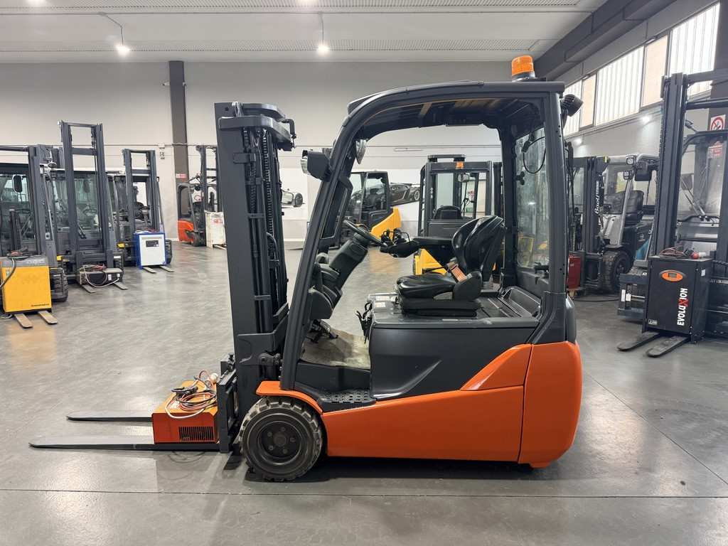Carrelli elettrici usati di marca Toyota modello 8FBET20 con propulsione Elettrica, portata 20 q.li, altezza di sollevamento 2700 mm, a noleggio. Occasione.