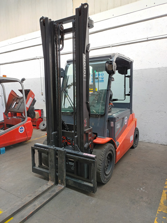 Carrelli elettrici usati di marca Toyota modello 8FBMT45 con propulsione Elettrica, portata 45 q.li, altezza di sollevamento 4000 mm, a noleggio. Occasione.
