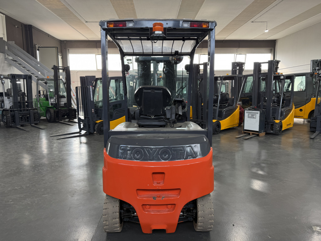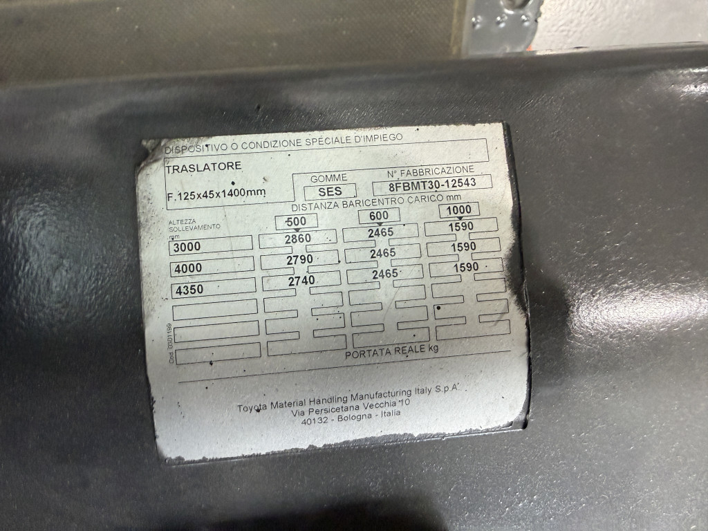 Carrelli elettrici usati di marca Toyota modello FBMKT30 con propulsione Elettrica, portata 30 q.li, altezza di sollevamento 4350 mm, a noleggio. Occasione.