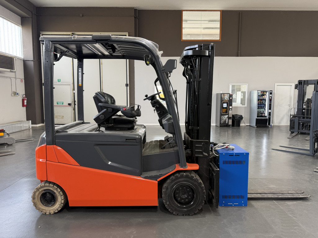 | Equipaggiamento | Semicabina, Tettuccio, Vetro anteriore, Fari da lavoro anteriori, Fari da lavoro posteriori, Lampeggiante, Cicalino, Parabrezza, Sterzo, Funzione tartaruga, Pedale singolo, Tergicristallo, Specchio retrovisore, Freno a mano a pulsante, Indicatore scarica batteria, Contaore, Gancio traino |