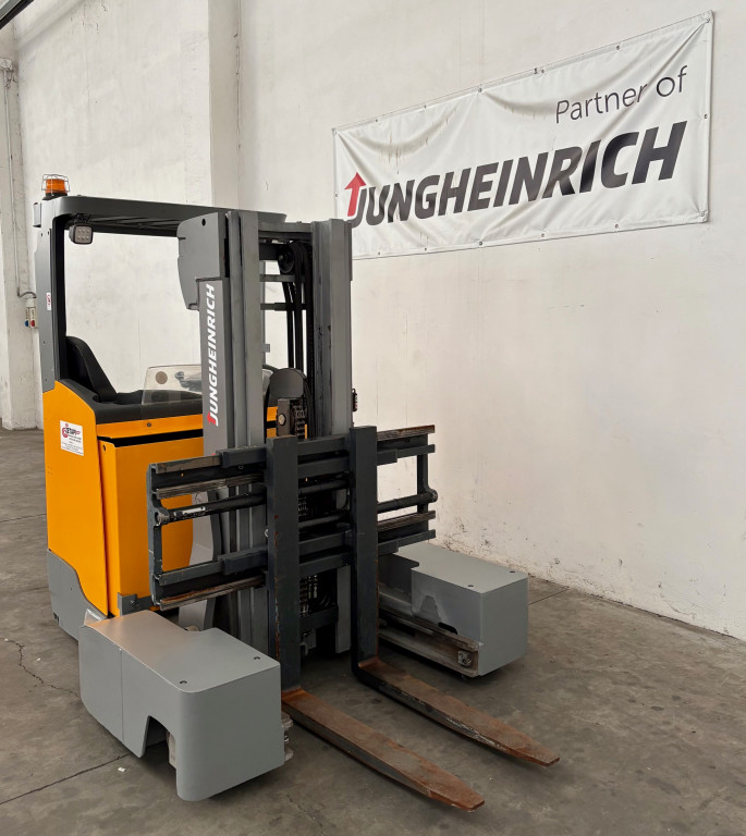 Carrelli retrattili multidirezionali di marca Jungheinrich modello ETV Q25 con propulsione Elettrica, portata 25 q.li, altezza di sollevamento 4250 mm, a noleggio. Occasione.