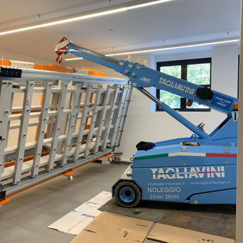 Gru Pick & Carry di marca JMG modello MC32S con propulsione Elettrica, portata 32 q.li, altezza di sollevamento 7000 mm, a noleggio. Occasione.