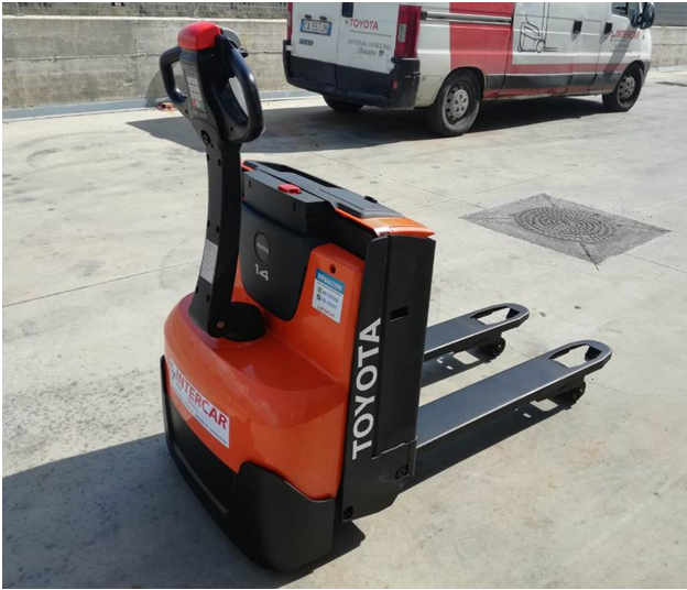 Transpallet elettrici uomo a terra di marca Toyota modello 8PM14 con propulsione Elettrica, portata 14 q.li, altezza di sollevamento 0 mm, a noleggio. Occasione.