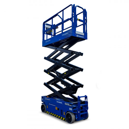 Piattaforma a pantografo di marca JCB modello S 2632 E di portata 250 kg, con propulsione Elettrica, altezza di lavoro 10,10 mt, a noleggio.